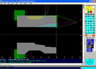 Lathe-CAM is a simple conversational 2 Axis part programming system. Featuring pull-down menus, on-line help, complete icon-driven questions and answers. Graphics are drawn as you answer the questions. Lathe-CAM also has customizable tool libraries. The tool libraries contain default tool and offset numbers, X & Z tool change positions, tool radius, max RPM, speed, and spindle directions. You can create as many tool libraries as you like. Although Lathe-CAM doesn't require any geometry to be drawn prior to using Lathe-CAM, you can. The Shop-Talk CAD program can be used to draw the part geometry which can be imported into Lathe-CAM to be used to generate the tool path. Lathe-CAM Comes with a universal post builder to configure your post processors G-Code any way you like it. Additionally, the output can be generated for many different controls, including but not limited to:
