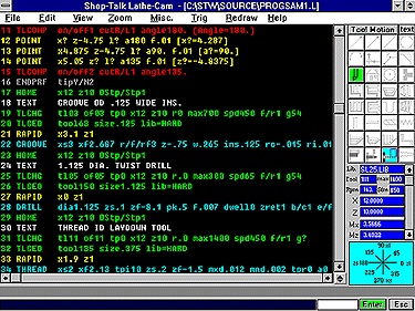 Shop-Talk Lathe-CAM is the simplest Conversational Program on the market today. Lathe-CAM is easy to use because it works just like a CNC programmer thinks. The programmer enters simple English text commands using the same logic your CNC machine uses.